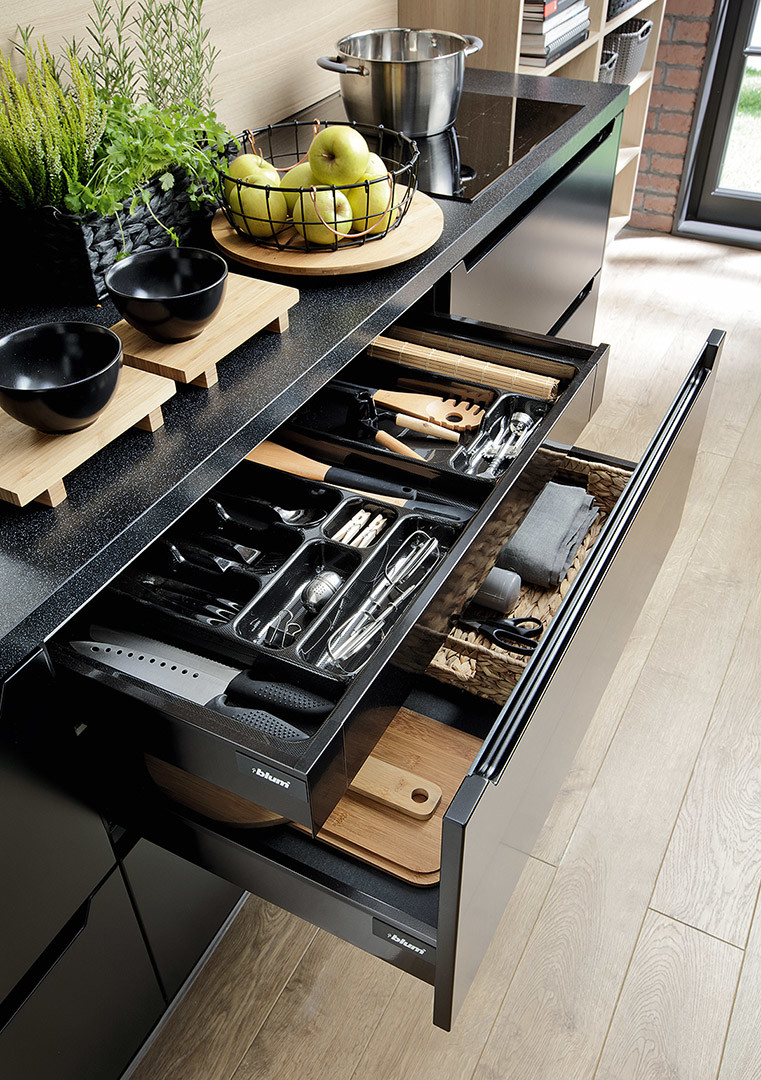 Ladekasten met BLUM softclose zijn verkrijgbaar met een toeslag van 500 euro per kast.