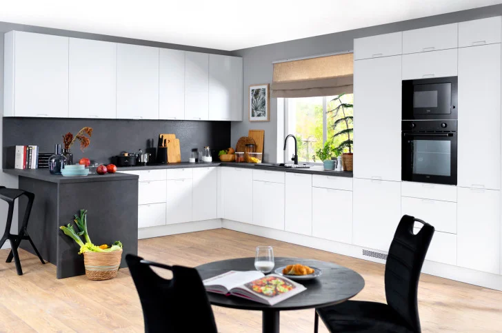 Onze keukens worden geleverd met fronten van meubelplaat. U heeft de keuze uit verschillende kleuren, waaronder wit, antraciet of kasjmier