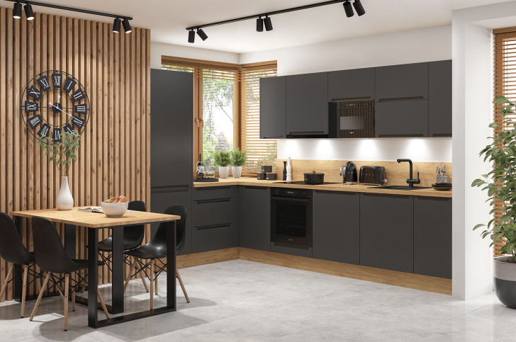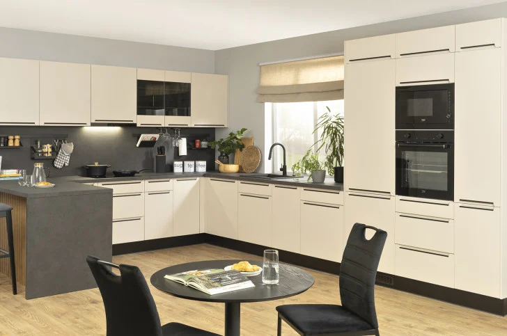 Kies een stijlvolle keuken binnen uw budget! Onze keukens zijn verkrijgbaar voor slechts 750 euro per lopende meter, inclusief plinten, poten, onderkasten, werkblad en bovenkasten. Voor slechts een toeslag van 500 euro per kast kunt u ook ladenkasten toevoegen aan uw keuken.